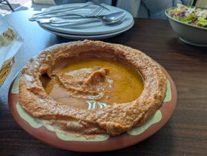 Extraordinary and stunning food. It is a unique variety of Levantine cuisine, since Syrian food uses different spices and sauces from their neighbors. (More pomegranate and pepper based, for example.) Every meal I have here sends me over the moon. I especially recommend the Aleppo spicy hummus and fattoush salad, which are both a feast for the senses. For mains, you cant go wrong with the perfectly smoked kebabs, the warming fatteh, or the hearty mansaf. Cherry kebab is really good especially when Michigan cherries are in season.