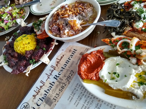 The most unique is Syrian food in Michigan. Chamo Bakarat Master Chef owner worked in an Aleppo Syrian 5 star hotel that brought his Crafted meals to Dearborn 8 years ago. A couple of signature plates stand out, Muhammara is a nutritious dip originating from the Syrian city of Aleppo. It is made with a combination of roasted red peppers, olive oil, and ground walnuts. The peppers give the dish a particular sweetness and smoky flavor, while ground walnuts make it texturally exciting. Kabob Karaz Famous in Aleppo Cherry Kabobs OMG Wonderful grilled lamb kebabs in inky cherry sauce a must try. She had superb Deep Fried Kibbie spot on and a Syrian Fatoush Salad unique so different we enjoyed. In Aleppo, the meal starts with the explosion of Flavor Red Bread, my addiction only found here in Dearborn. So Delightful Syrian Shakriya Yogurt Soup and Mulukhiyah with Chicken be Middle Eastern Greens think Collard Greens so welcoming in my palate of amazing foods. Finall, WOWED Lamb Fattah a breakfast dis, they have 9 to offer plated up all day long. The king of Aleppo breakfast Lamb Fatteh is a bread based dish usually served at breakfast. The bread is broken up into pieces (where the word Fattah comes from) and toasted or fried.
