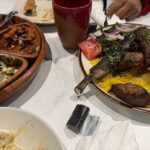 The Costmer service was great the atmosphere was amazing but the mixgrill I got that was so dry the rice was good and the lamb chops but the chiken and the beef was so dry I couldnt eat it .
