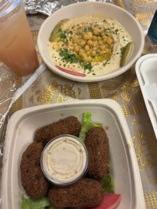 This was the most delicious meal I ate while in KC last week. Delicious falafel and hummus and a tasty orange blossom basil lemonade.