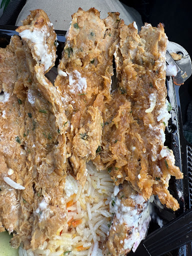 Pretty sure I just ate raw chicken super mushy ground chicken shiskaba took it to go so couldnt confront the staff I hope I dont get food poisoning