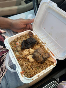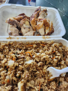 They deserve none stars . That portion cant even do for 2 adults ! All the other restaurants I bought from , I always have leftovers. 2 pieces of chicken, like seriously . All who said it taste like Guyana fry rice cant cook . Yall should hire chef Ramsey to fling the food away