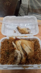 Ordered a large tray of fried rice along with the tray of chicken and asked for some hot sauce and to my surprise the lady said no. Not a way to handle business.