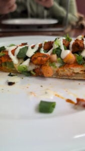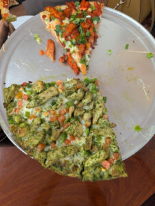 There crust and bread is better than Tandoori pizza it so fresh and healthy tasty highly recommended and dont forget to try Indian sticks those are so good with pineapple and jalapeños on it