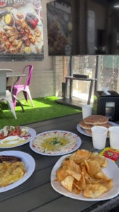 Food was great. Chicken schwarma was my favorite alongside the chocolate and honey baklava. Chicken breast was the best of the kebab, but second to the schwarma. Service was fair, the outdoor seating area is really nice and shaded. Outdoor music clashed with the interiors music though. Would come back again.