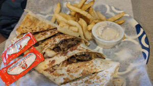 Chicken Shawarma was great! So were the fries. Didn’t eat in, but the atmosphere was nice and the staff was friendly. Will have to go back for the hookah.