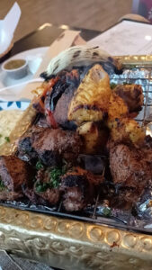 The menu was a perfect balance of comfort and indulgence: the hearty lentil soup set the tone for a warm and welcoming meal, while the veggie sambosas were crisp and flavorful. The hummus and baba ganoush were rich and creamy, paired perfectly with fresh bread. The fattoush was refreshingly crisp, and the fettah was indulgent and satisfying. The vermicelli rice complemented the mains beautifully, which included perfectly seasoned kufta with potatoes, fragrant chicken mandi, and the show-stopping masakhan rolls – an absolute favorite! To top it all off, the rice pudding was the perfect sweet ending.