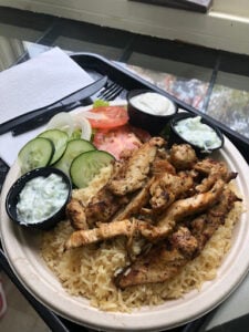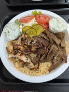 Had their greek dinner chicken platter. It was great. Love the rice.