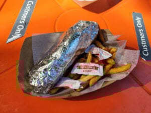 Solid step up from fast food at a reasonable price. Getting a burger for $10 is pretty inexpensive these days. It was ok but not fantastic. We also got a falafel wrap and while it satisfied the hunger i think they should put a few pickled onions, spicy sauce or something to up the flavor. Falafel seemed like real chickpeas but seemed a bit heavy. Fries were fresh and well cooked but there is a coating on them i didn’t care for. Service was friendly and speedy. Place was clean. Decent variety on the menu with burgers, wraps, plates, pizza.