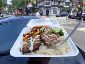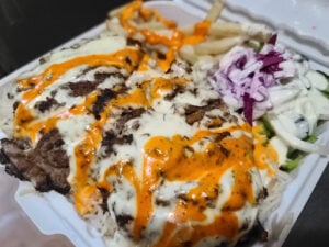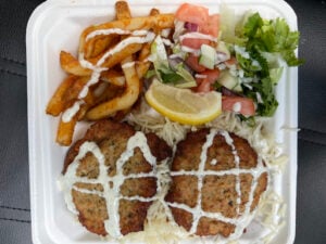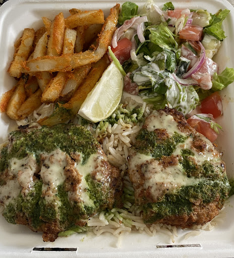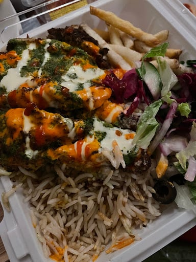I had the chicken chapli kabob over rice with fresh salad and fries plus it comes with a free drink. The food was Absolutely delicious! Will definitely be coming back to try the other options.