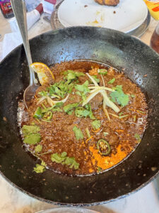 We ordered chicken karahi, naan, salt lassi, sweet lassi, korma, naan and meat platters, lamb chops and gajar halwa. Everything was good.
