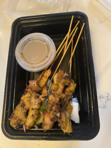 Satay was a great choice as a meal or snack. Best to share.