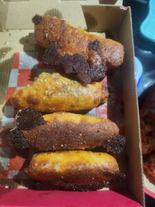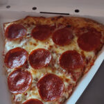 The cheese has an authentic flavor. It is warm and stretchy, but not oily, gooey or runny. The cheese is spread relatively thick and consistently across the whole pie. The toppings cover to the crust, and were surprisingly even … even geometrically placing a consistent number of pepperonis per slice. LOL.