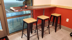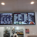 The restaurant itself is primarily takeout and delivery, but they have a couple of shelf-like table tops on two walls with bar stools that is comfortable for a quick bite at lunch time.