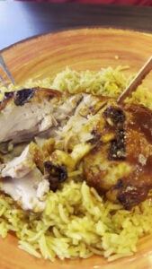 Food was delicious. They have a mango chili sauce that is out of this world good!!! Rice was cooked to perfection