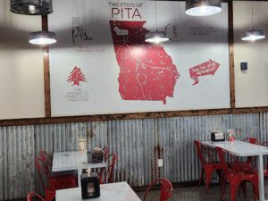 I was Jonesin for a gyro a while back, & did a quick search and found Pita Mediterranean Street Food in Smyrna. The area is really nice where its located. I walked in and ordered. Looking around, the place is pretty nice! Theres plenty of seating, it was clean, and the utensil dispenser is pretty cool!