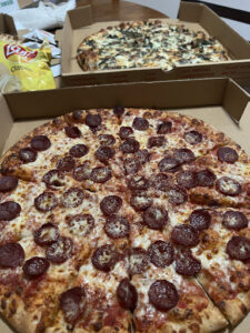This Pizza Stop place was so good that we both ate a whole entire box of their pizza. Making the pizza only took less than 10 minutes, the people were very nice.
