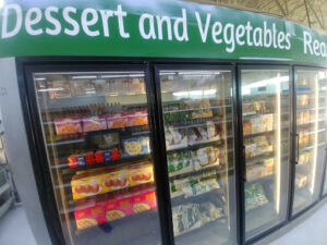 The selection of frozen and fresh produce, along with the meat, appears to be quite appealing and well-maintained.