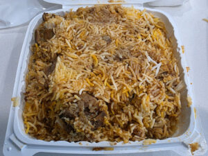 Excellent chicken or goat biryani