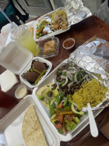 Good food and shawarma. It was a little overpriced compared to other places Ive been for similar quantities and quality of food and shawarma. Cant say there was anything unique about it but overall good if youre in the area and stopping by to eat