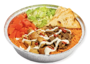 Very salty rice , beef was not fresh and very dry , Pitas were stale