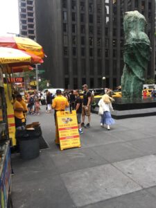 Today 3/30/21, at 10:00 am, I stopped by The Halal Guys vending carts located on 53rd Street at 10:00 am, I was told by senior man they would open at 11:00 am. I agreed to wait there were two carts at the 53rd Street location. I was shocked to see the person cooking the meats on the (cart to the right), taking a sip of water from a plastic bottle of water, what I saw next was extremely unhealthy and disgusting, as the person who was drinking the water poured the rest of the water, he was drinking onto the cooking meat that was on top of the flat grill. When I brought it to the attention of the other person assisting with the cart setup, he told me it’s because the meat is dry. Another person senior man arrived in a van, When I mentioned it to him, he told me he was a manger and that the person who poured the water is a new employee. I told him I was going to file a Department of Health Complaint he pleaded with me (No Please No Health complaint). It’s properly a regular practice this guy does every day. Attach is the photo of the Halal Guy vending cart the person you’ll see on the left of the vending cart cooking is the same person who poured the DIRTY INFECTED water onto the cooking MEAT.