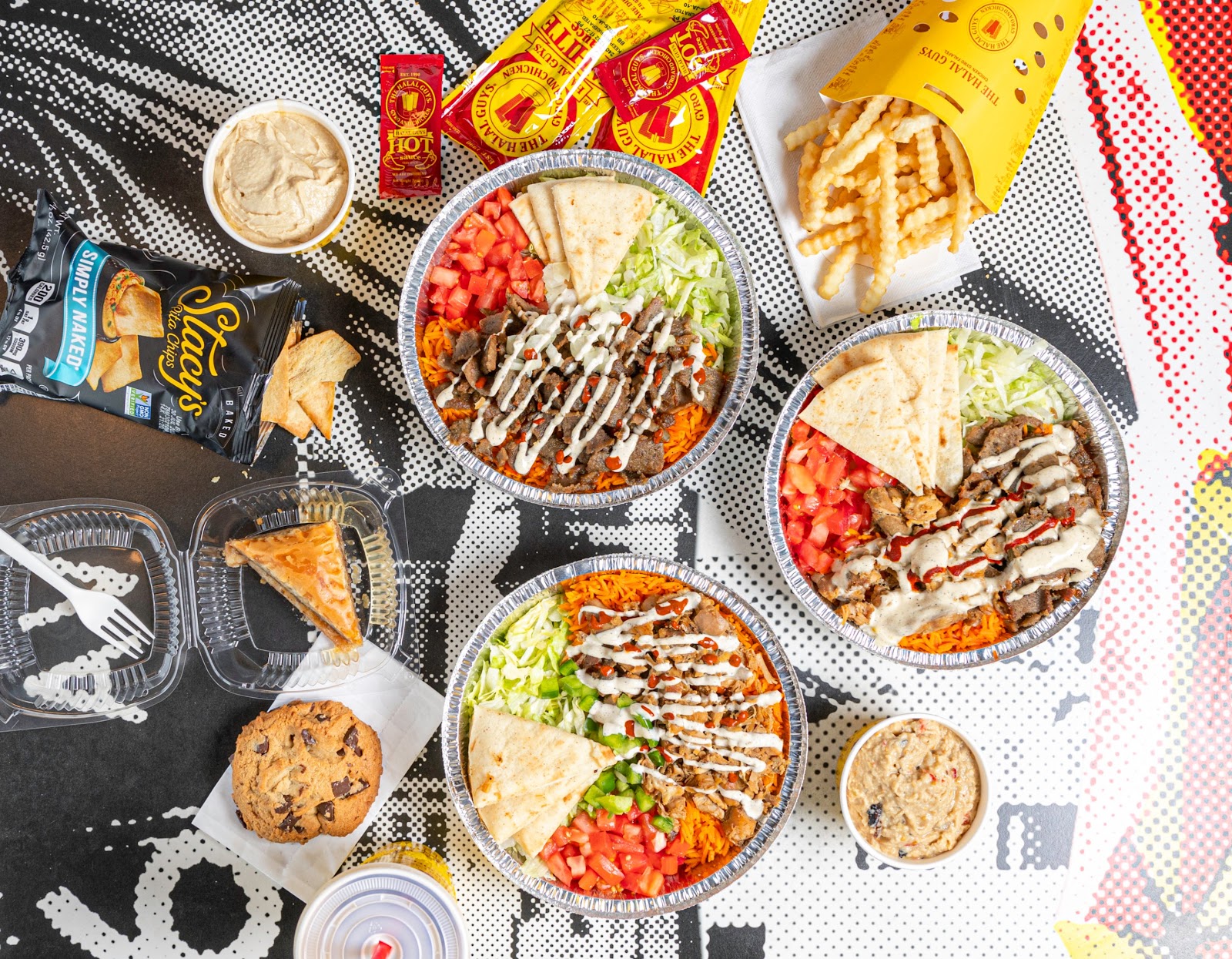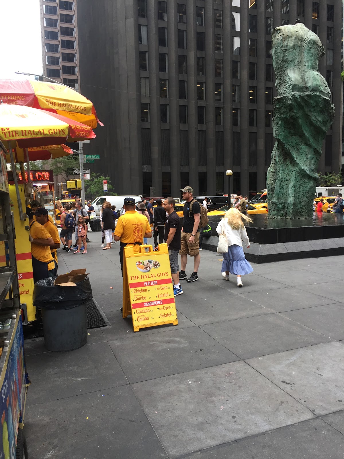 I order a family meal via ubereats and pretty disappointed. Came with meat (we did a mix of chicken and gyro), rice, salad, pita bread and dessert. It came out to be around $50. For the portion, it would be cheaper to get individual platters. The meat didn’t taste as good as the one in manhattan and I found a piece of a glove in my salad… That being said I will not order from here again.