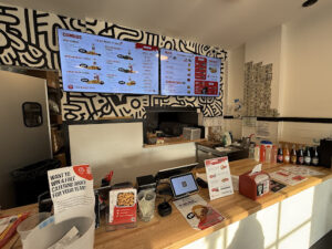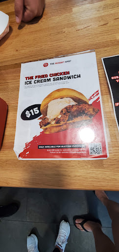 They restaurant is small and very clean and organized. They have their merchandise hanging on the side. There is no public restroom. This is great for a quick bite and to go orders. They have a summer menu which I had looked over before I arrived to the restaurant. One of the summer menu items that grabbed my attention was the spicy fried chicken sandwich with Chipotle ice cream….yes you read it correctly … fried chicken and ice cream .